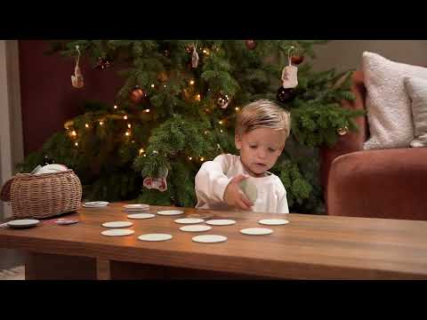 Fabricado com materiais seguros e duradouros, o jogo apresenta cartas redondas resistentes com um acabamento de alta qualidade e ilustrações de Natal únicas da Little Dutch.